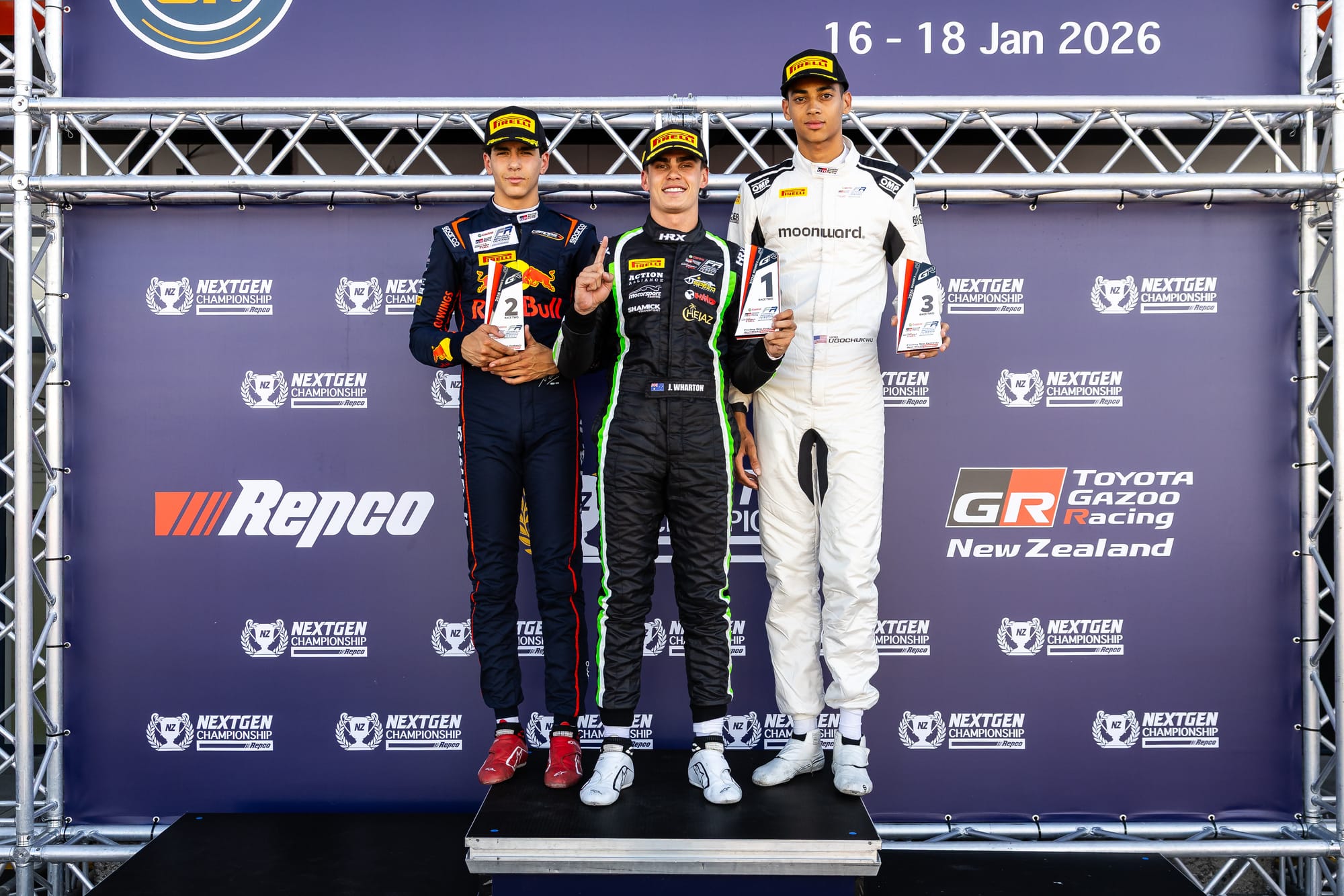 James Wharton won the second race of the Toyota FR Oceania Series at Taupo, opening his account for 2026.
