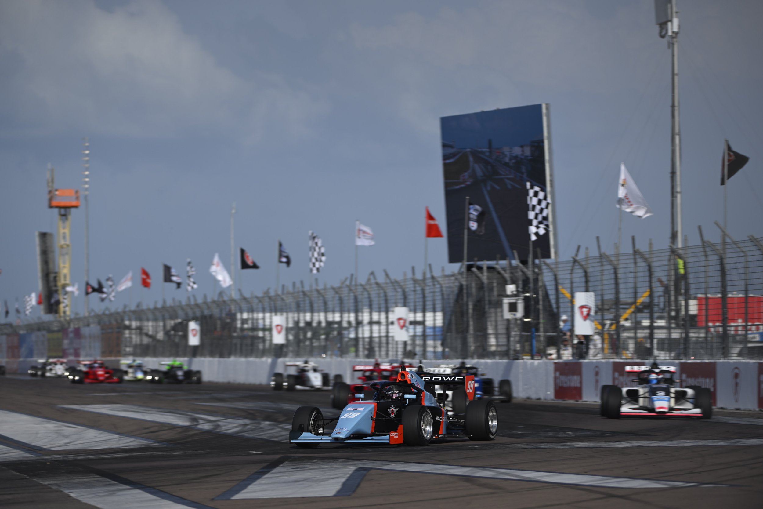 Myles Rowe leads the USF Pro 2000 field during the season opener in St. Petersburg. (USF Pro Championships)