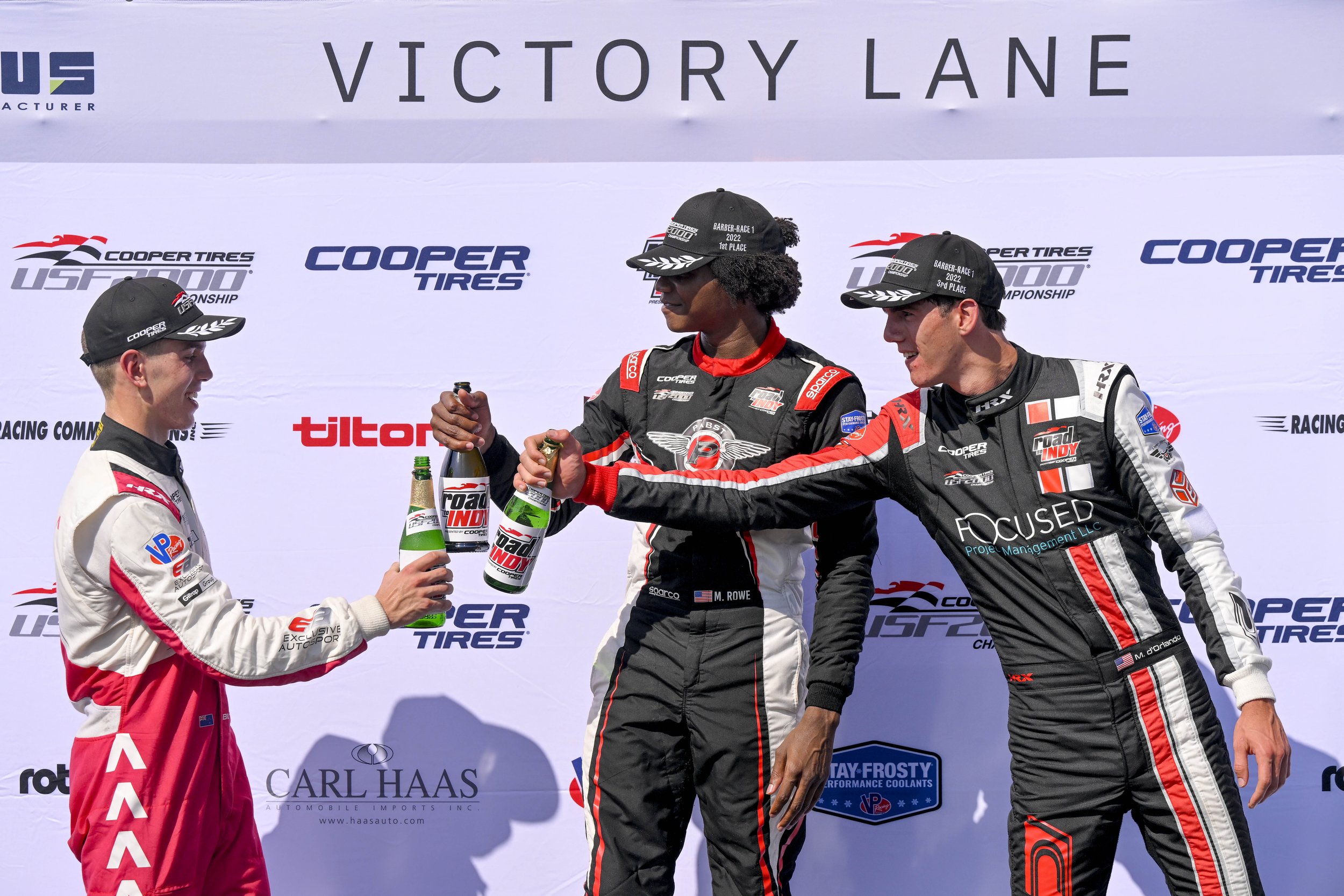 Myles Rowe, Billy Frazer and Michael d’Orlando celebrate on the podium. (Road To Indy)