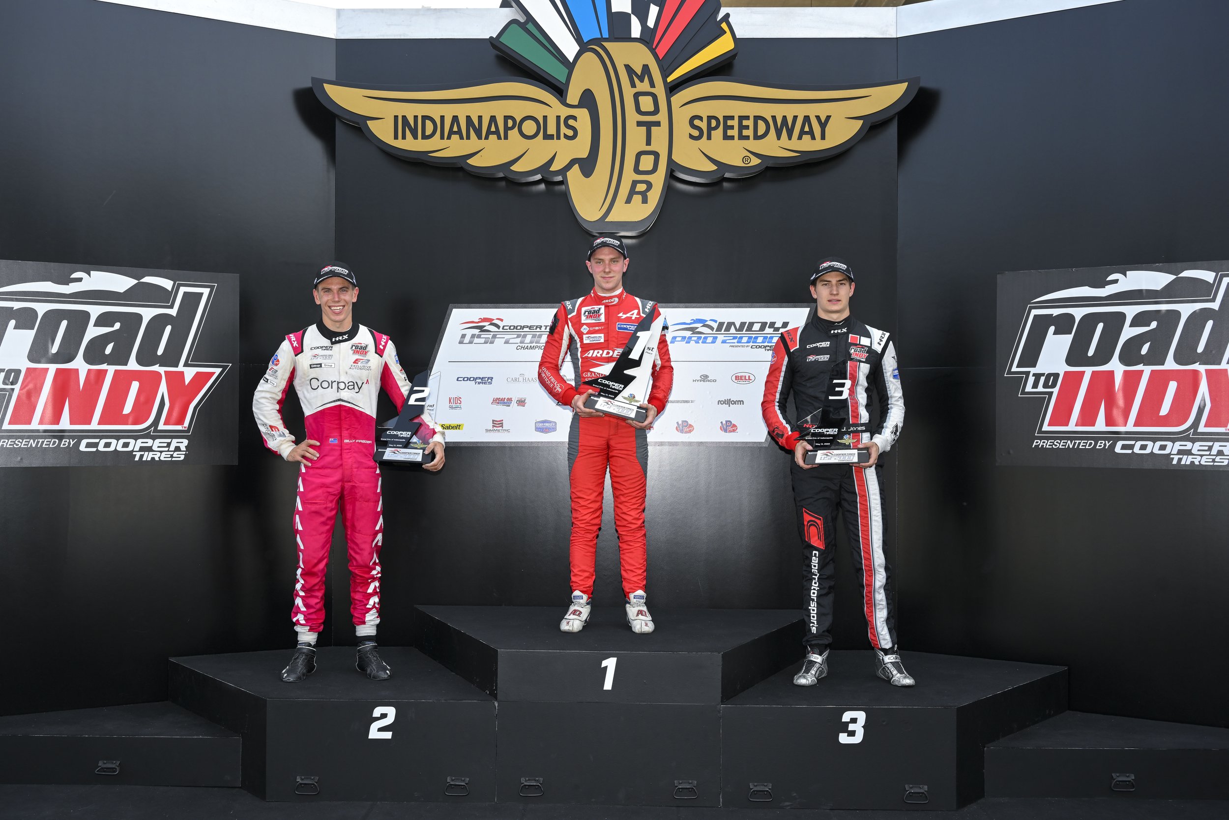 Alex Quinn, Billy Frazer and Jager Jones on the podium. (Gavin Baker/Road To Indy)