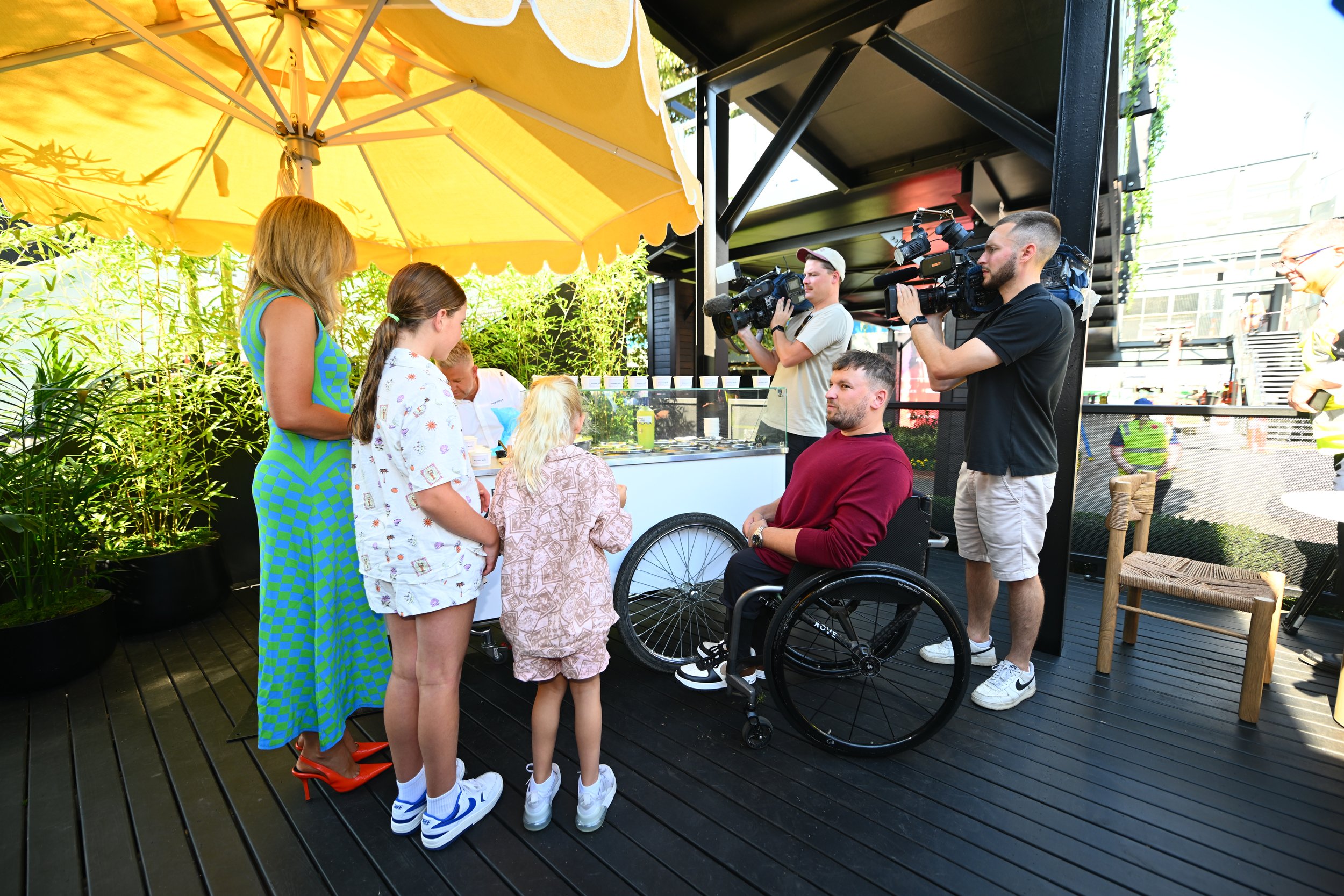 Australian Grand Prix ambassador Jacqui Felgate with Marriot Bonvoy ambassador Dylan Alcott on Monday at the Australian Grand Prix. (Getty Images/AGPC/Supplied)