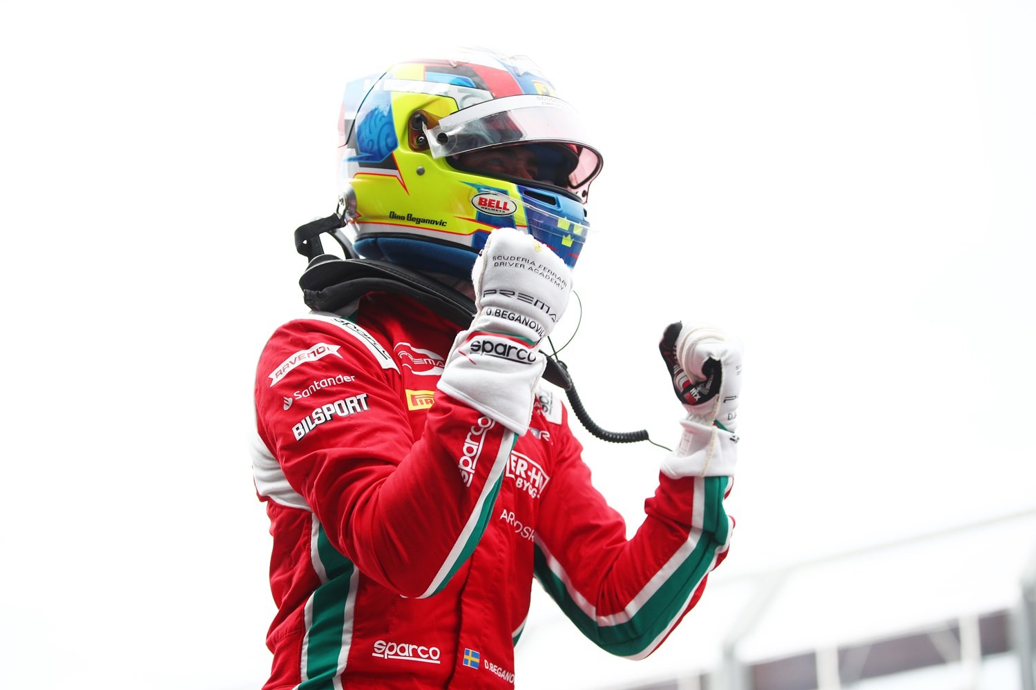 Dino Beganovic celebrates his maiden FIA Formula 3 victory in Melbourne. (PREMA Racing/Supplied)