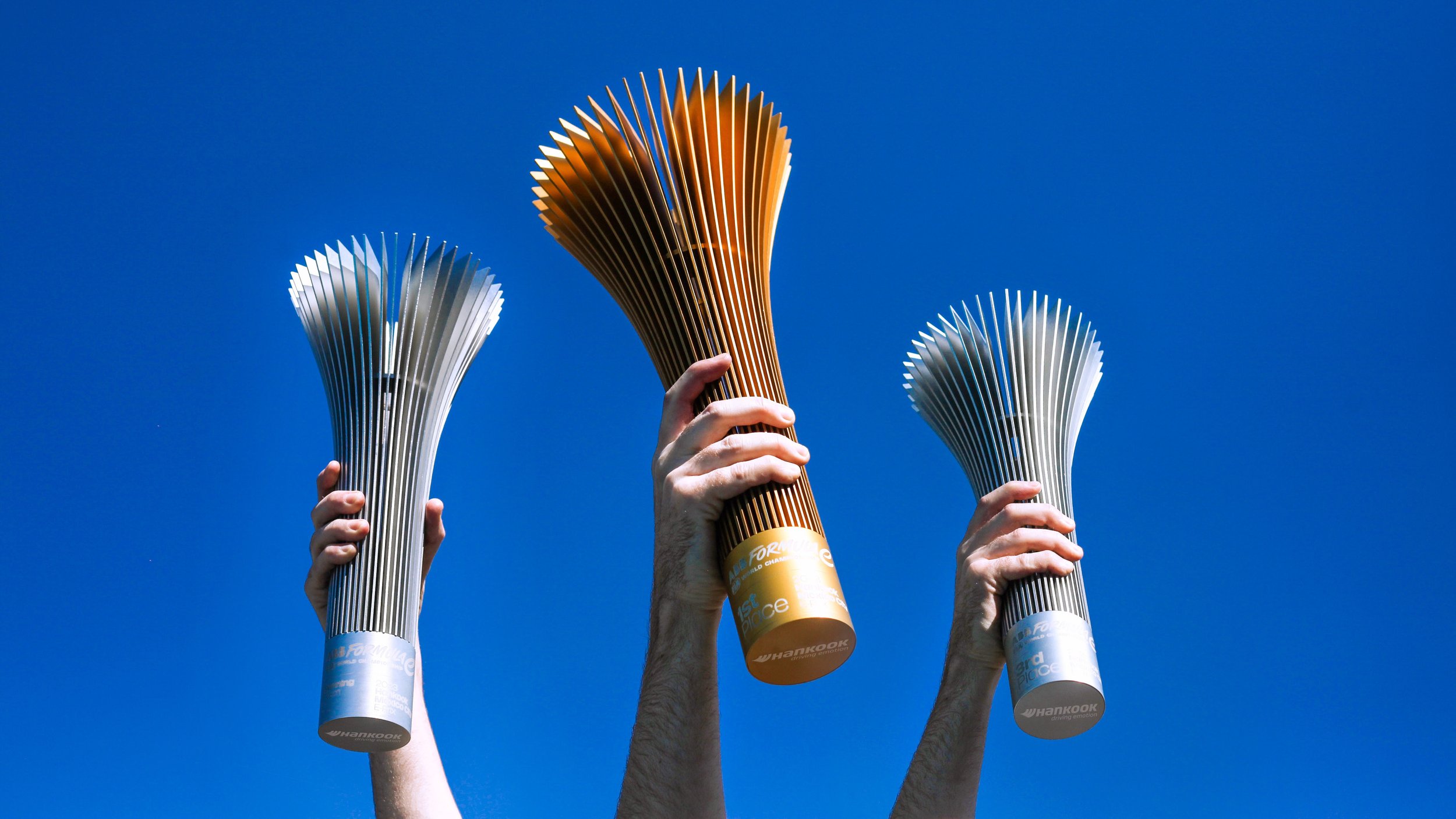 The brief from the all-electric series was to create trophies that "conveyed electrification, speed, and movement, whilst also retaining elegance and modernity."