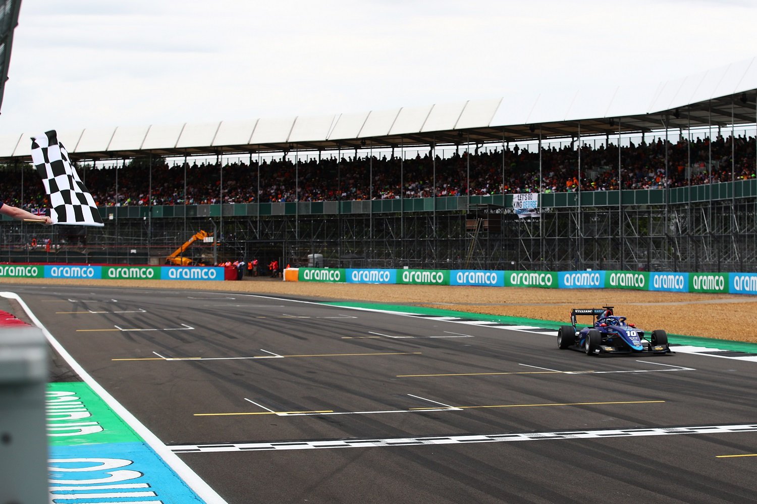 Franco Colapinto takes the chequered flag in the Formula 3 sprint race at Silverstone. (Formula Motorsport Limited)