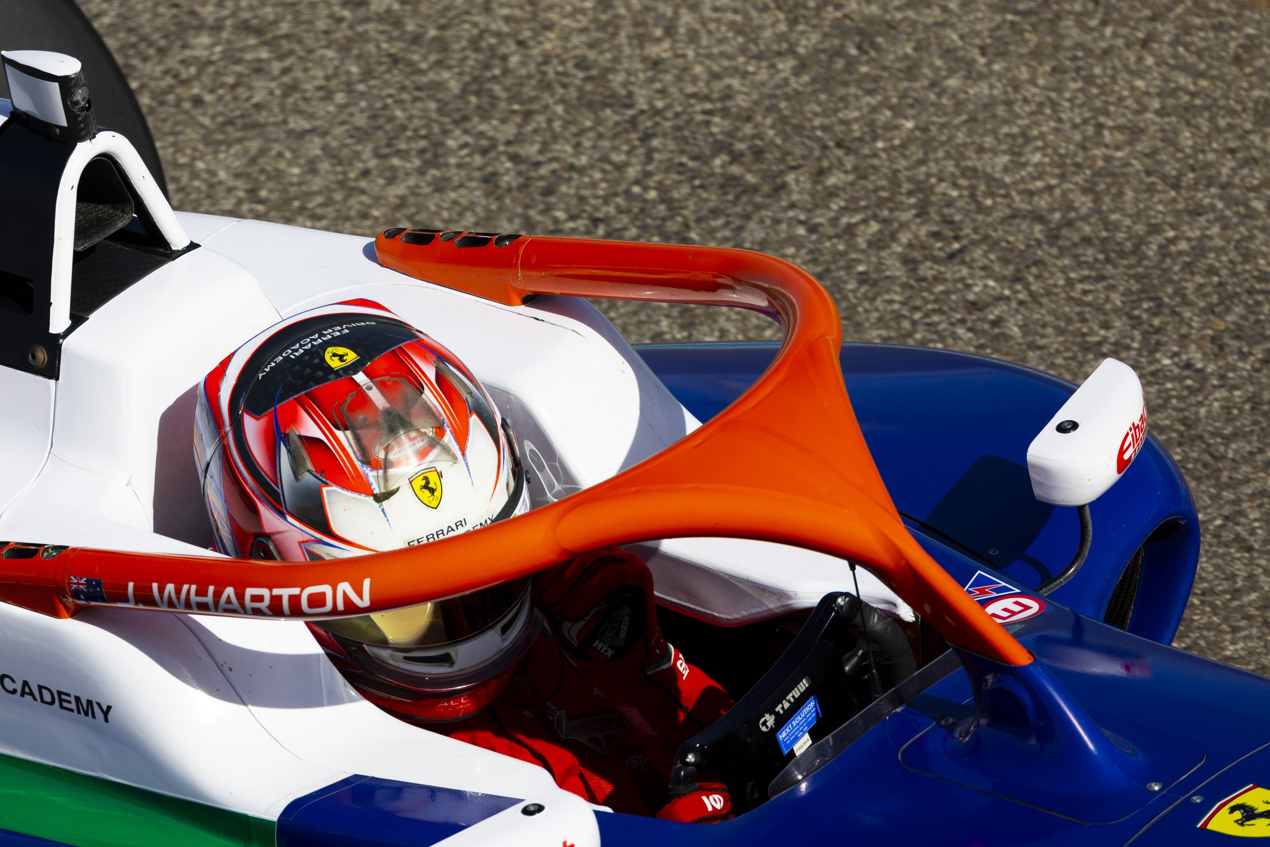 Wharton started with his car pointed directly into the path of his rival, with the pair going wheel-to-wheel on the opening lap before the Ferrari Academy Driver whipped back into the lead.