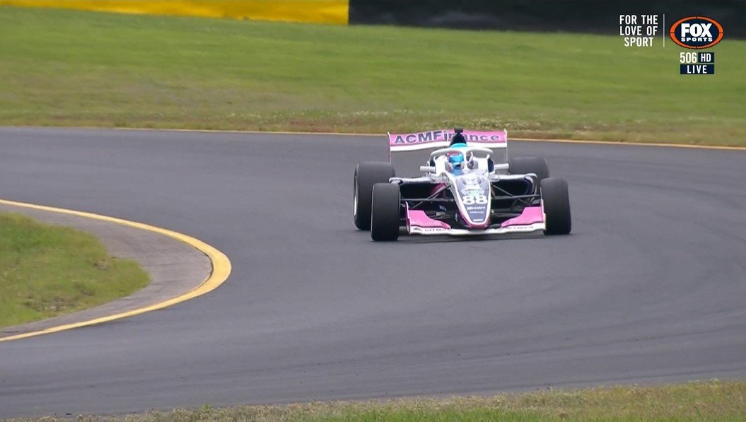 The fight further down the field tipped over on lap eleven when Blake Purdie attempted to slip down the inside of Joey Mawson in turn eight, clipping his right rear tyre and spinning the current Australian Drivers' Champion.