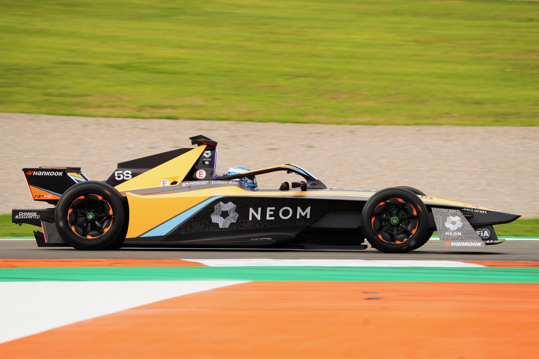 Legendary race team McLaren enters the Formula E field backed by Saudi Arabian planned city NEOM and fielding Rene Rast (pictured) and Jake Hughes. (Malcolm Griffiths/FIA Formula E)