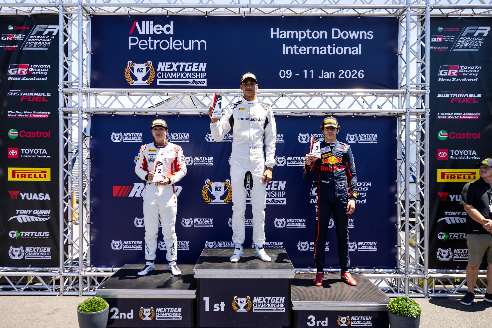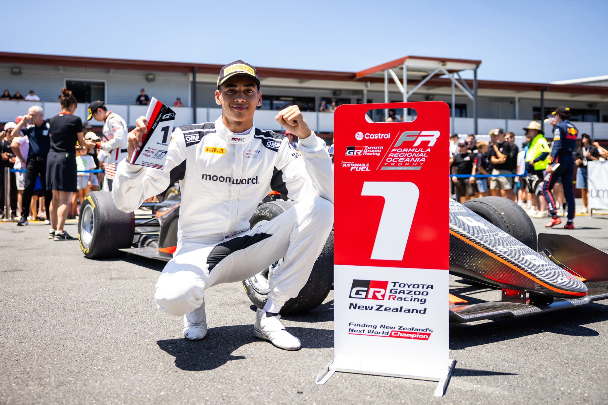 WAIKATO, New Zealand–Ugo Ugochukwu made his way through the pack from fourth on the grid to take his first victory in the Toyota Formula Regional Oceania Trophy series at Hampton Downs.