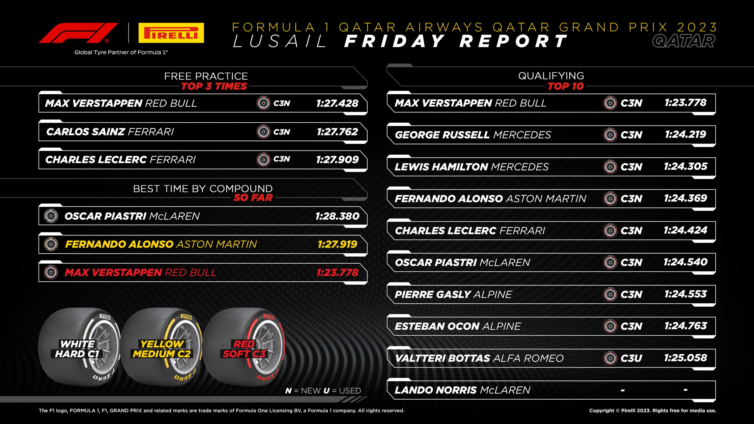Pirelli tyre analysis from Friday in Qatar. (Pirelli)